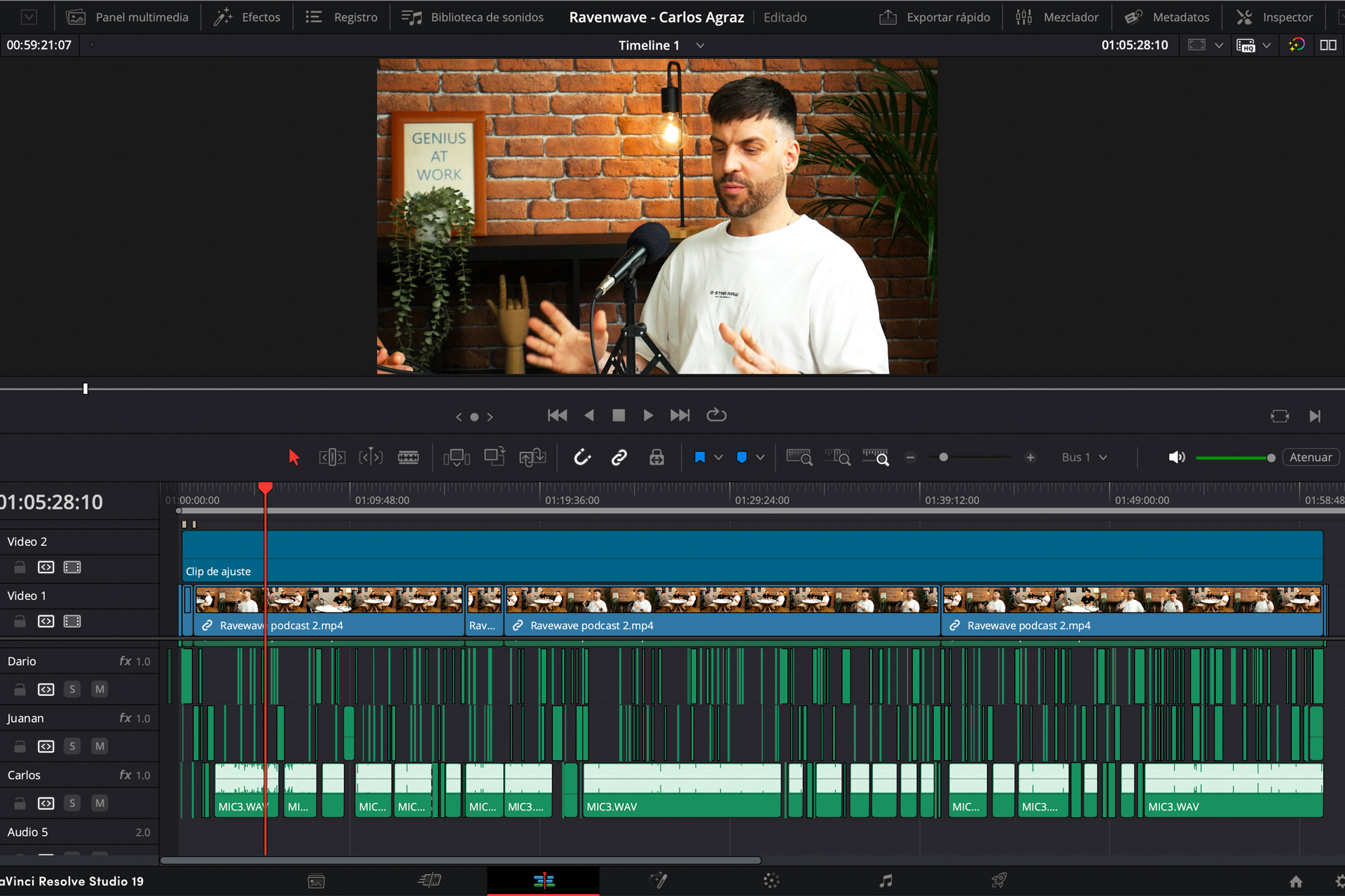 Cada micrófono se masteriza individualmente, ajustando niveles y eliminando ruidos para que las voces suenen claras y profesionales. Podemos incorporar intros, outtros y gráficos personalizados en el video final, asegurando que el producto sea ideal para plataformas como YouTube y Spotify.