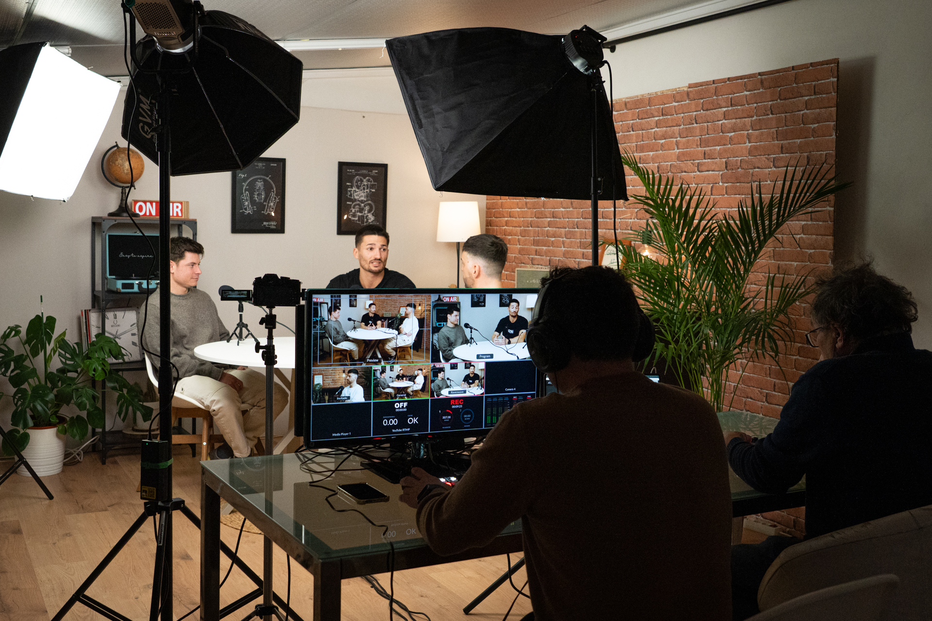 Decorado moderno, iluminación profesional, 3 cámaras y una mesa de realización para capturar cada ángulo en tiempo real.